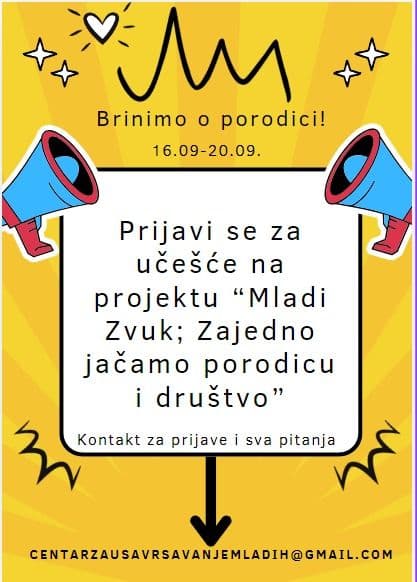 У Суботици је током септембра реализован омладински програм под називом „Млади звук: Заједно јачамо породицу и друштво“, чији је циљ био да подстакне младе да размишљају о значају породице, личног развоја и професионалних перспектива. Пројекат је окупио ученике средњих школа, стручњаке из различитих области и представнике локалне привреде, стварајући простор за учење, разговор и нова искуства.
